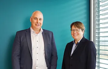 Roger Süess, Green (links), und Marianne Wildi, Hypothekarbank Lenzburg, im Interview. Beide sind seit 2022 im Vorstandsausschuss des SAV.