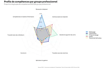 Illustration 3 : Profils de compétences des métiers où le chômage a augmenté et l’immigration est élevée.