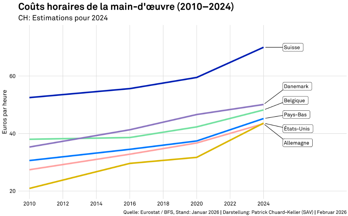 La Suisse affiche l’un des niveaux des coûts de main-d’œuvre les plus élevés au monde