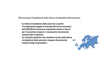 La libera circolazione delle persone e quindi l’immigrazione legata al mercato del lavoro dai paesi dell’UE/AELS rimarranno importanti anche in futuro per l’economia svizzera: è necessario riconoscere questo fatto e tutelarla.