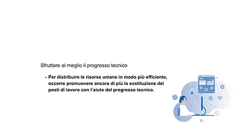 L’automazione, la digitalizzazione e l’utilizzo dell’intelligenza artificiale non portano solo ad un aumento della produttività. Consentono inoltre di svolgere sempre più attività che un tempo richiedevano risorse umane, tramite macchine. Ciò vale in particolare per le attività ricorrenti, dispendiose in termini di tempo e quindi ad alta intensità di personale. Le risorse lavorative umane possono così essere alleggerite e liberate per altre attività.