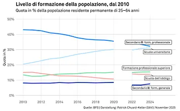 La Svizzera si trova quindi ad affrontare una nuova sfida: non è la mancanza di formazione a costituire un problema, bensì lo squilibrio tra la struttura formativa e le opportunità di occupazione.