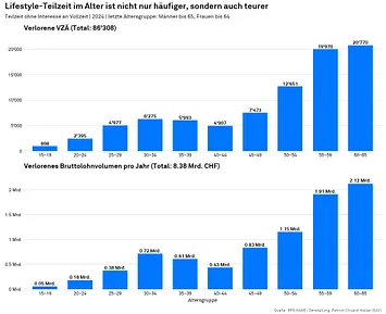 Der grösste Teil dieses Lohnausfalls stammt von Erwerbstätigen über 50 Jahren – einerseits, weil sie häufiger Lifestyle-Teilzeit praktizieren, und andererseits, weil die Löhne im Alter im Schnitt höher sind.