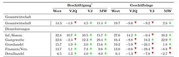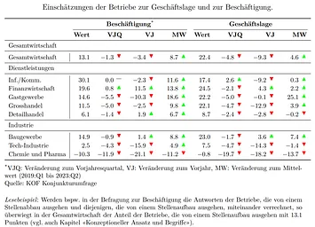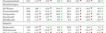 Vor dem Hintergrund der drohenden Strom- und Gasmangellage waren auch die wirtschaftlichen Prognosen für die erste Jahreshälfte 2023 pessimistisch. Dank des milden Winters wurden die Worst-Case-Szenarien nicht zur Realität und entsprechend fallen die Ergebnisse der Branchen positiver aus als erwartet. Hinzu kommt die weiterhin hohe Konsumlust als Nachholeffekt der Coronavirus-Pandemie und der guten Beschäftigungssituation. Diese wird zunehmend durch die auf die Preise durchschlagende Inflation abgedämpft.