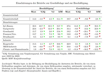 Im Arbeitsmarkt rechnen die Betriebe in allen Branchen nach wie vor mehrheitlich mit einem Stellenaufbau, was sich auch im stark akzentuierten Arbeitskräftemangel zeigt.