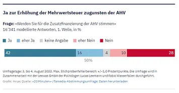 Was zudem bei den Umfrageresultaten zu den beiden AHV-Vorlagen auffällt: In der Romandie und im Tessin ist die Skepsis deutlich grösser gegenüber einem Rentenalter 65 für die Frauen als in der Deutschschweiz. Und die Altersgruppe der 50-65-Jährigen würde die beiden Vorlagen mit deutlich über 50 Prozent ablehnen.